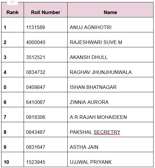 The topper of the examination was Anuj Agnihotri.